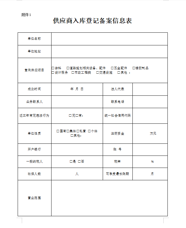 2.供貨商提交的申請(qǐng)資料必須實(shí)事求是,準(zhǔn)確真實(shí),如有弄虛作假行為,一經(jīng)查實(shí)將取消入庫(kù)資格。