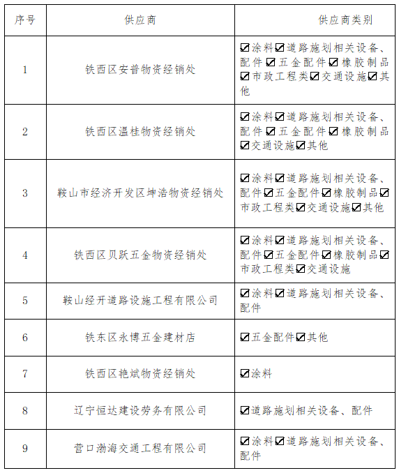 東澤公司供應(yīng)商入庫(kù)名單公告